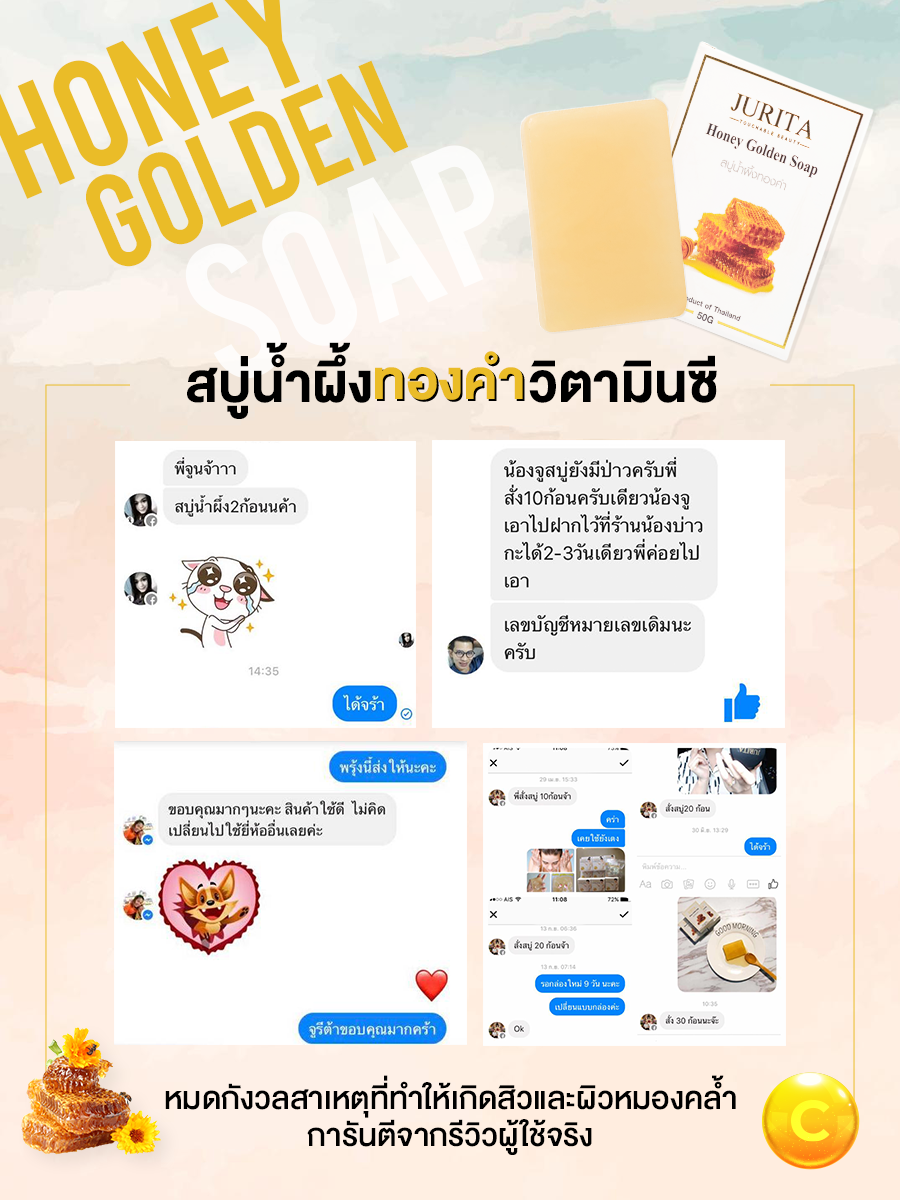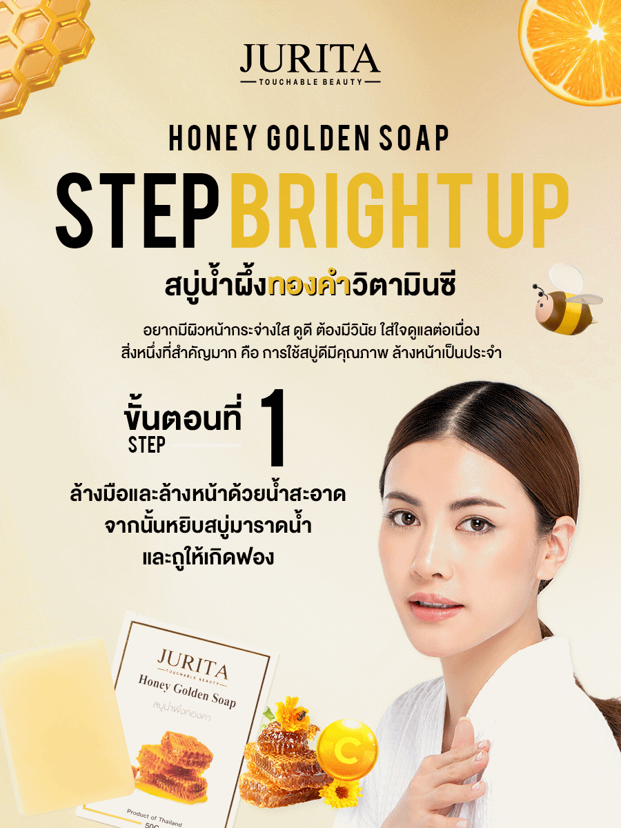 JURITA THAILAND – จูริต้า สบู่น้ำผึ้งทองคำ วิตามินซี จบปัญหาสิว ผิวกระจ่างใส นุ่มเด้ง